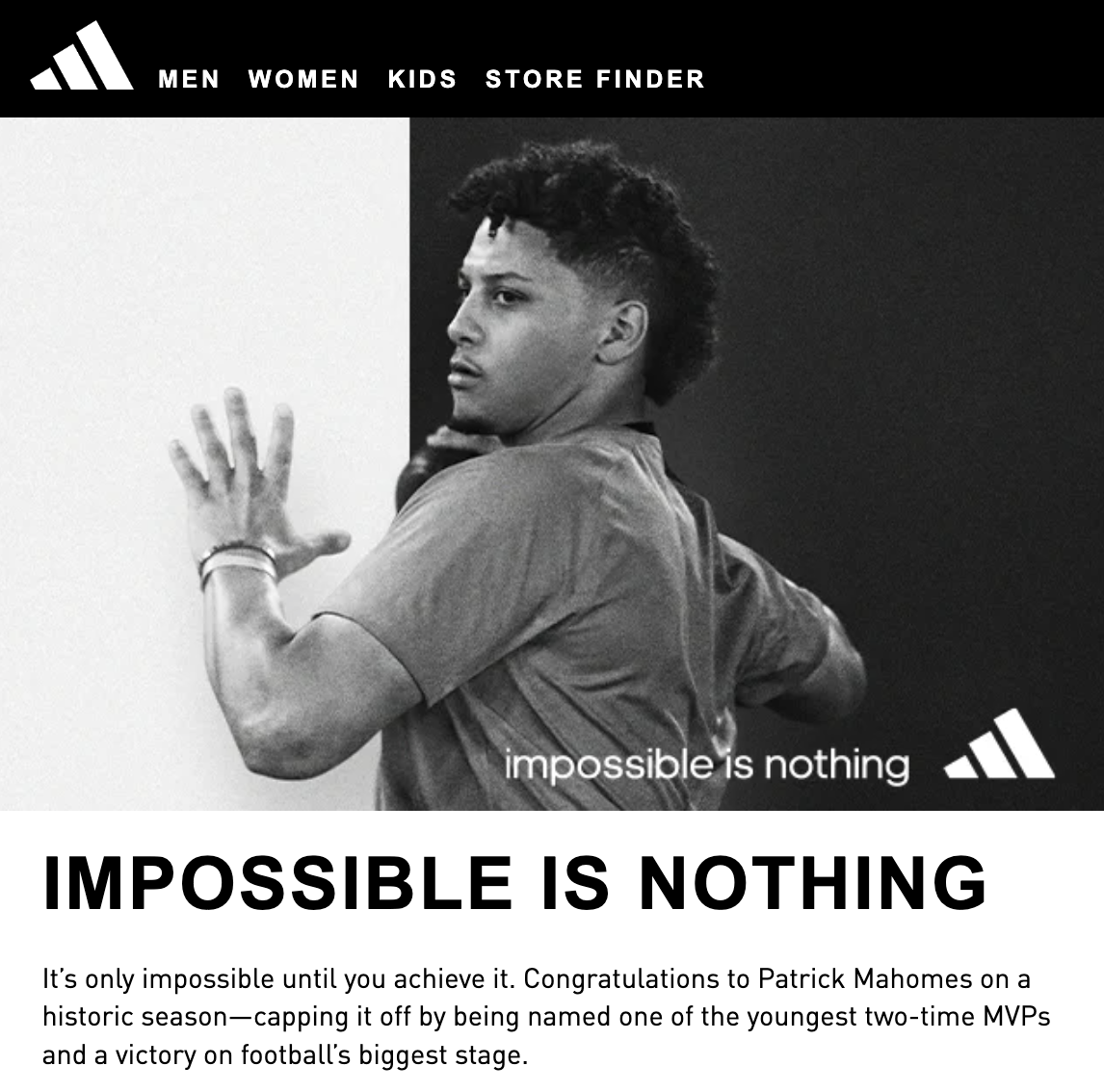 An email celebrating Trevor Lawrence’s top pick in the 2021 NFL Draft. In addition to hyping the announcement, we offered the chance for two lucky people to win signed adidas product.