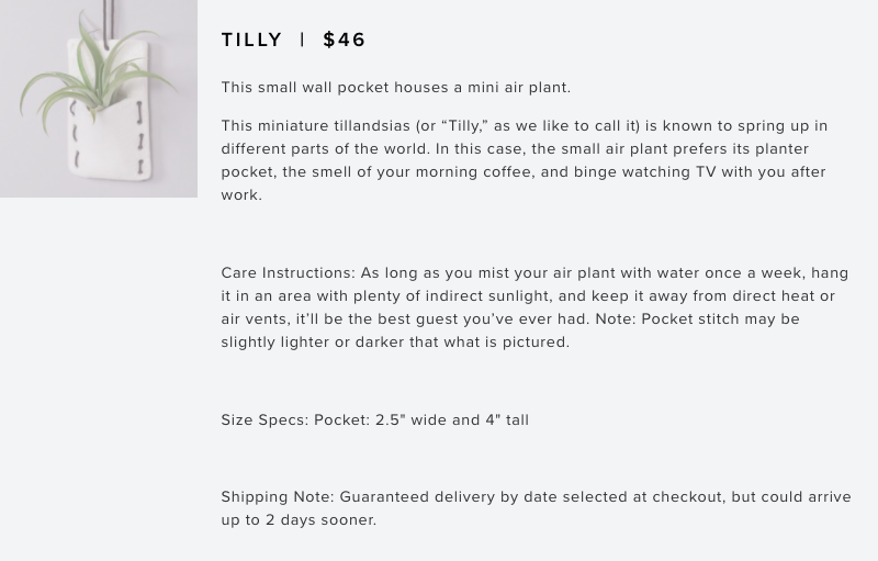 If you’re going to write about the products, why not help name them, too? When I came on board at The Bouqs Company, one of their main goals was to give structure to our product and collection naming. For each new season of bouquets, I devised thematic product names and supporting product copy to bring each new item to life.